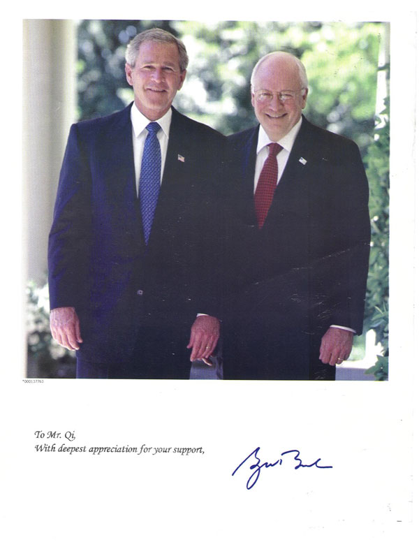 美国总统布什寄给齐爱华教授写有亲笔签名的照片做纪念