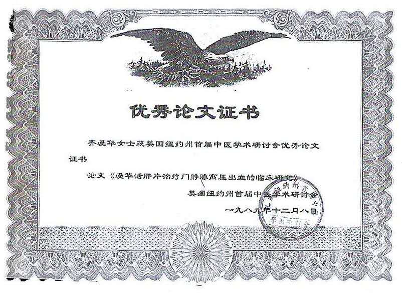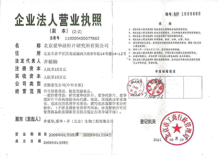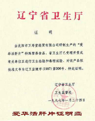 * 一九九二年,齐爱华将活肝片提交美国著名的普林斯顿大学FDA确认的标准实验室进行毒性实验,一万倍剂量符合美国FDA标准。齐教授经过十几年苦心钻研成的活肝片,可使任何原因造成的肝细胞损伤得到修复、再生。活肝片的权威性还在於符合美国FDA毒性测试要求,经过多次实验终於走上美国大药厂生产的轨道,已在美国畅销二十年。